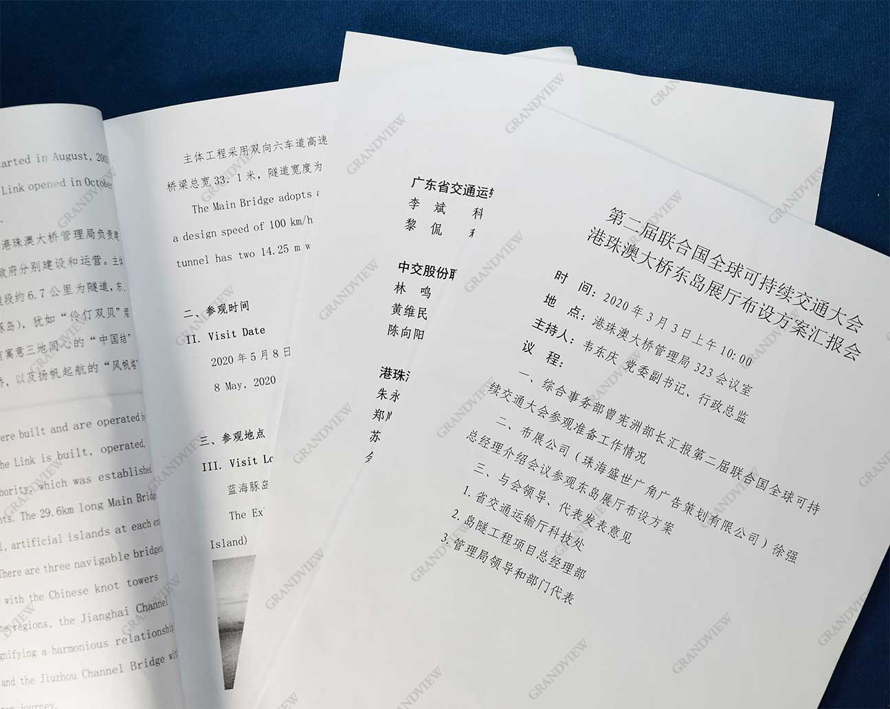 2020年3月3日,廣角團隊赴港珠澳大橋管理局與廣東省交通廳領導、港珠澳大橋管理局黨委副書記、行政總監韋東慶及其他工作人員就第二屆聯合國全球可持續交通大會-港珠澳大橋東人工島布展方案進行介紹匯報。