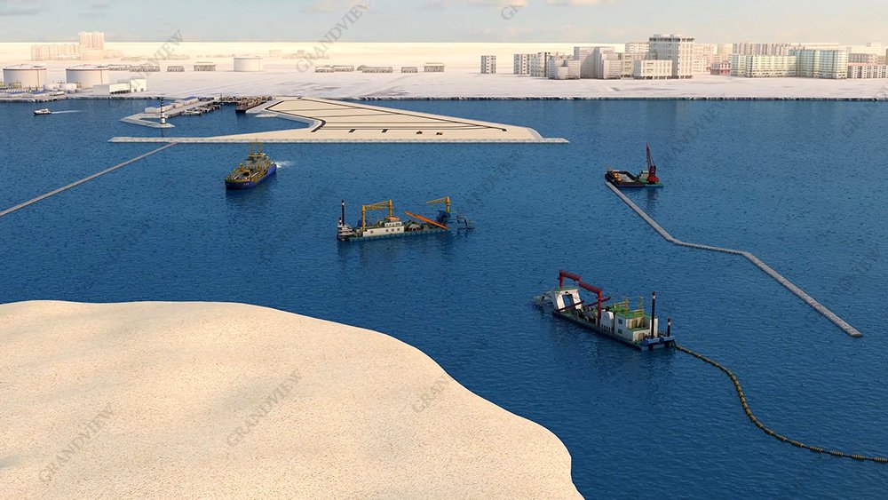 絞吸船清淤、臨時圍堰施工、疏浚吹填施工等作業過程,多方位角度、全景加特寫的鏡頭以成熟的動畫技術加以展現。
